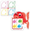 Reconnaissance de couleurs, de formes animales. Jeu de consignes, de prises d’informations visuelles complètes ou partielles. Agencement simple de pièces dans un espace quadrillée.