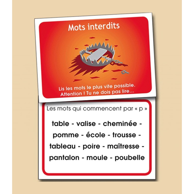✓ Lecture piégée : des exercices visant à combiner l’inhibition et la vitesse de lecture, essentiels pour les personnes ayant des difficultés à contrôler leurs impulsions. Cela permet de développer la capacité à inhiber des réponses automatiques et à porter une attention ciblée, des compétences cruciales dans de nombreux contextes de la vie quotidienne.
