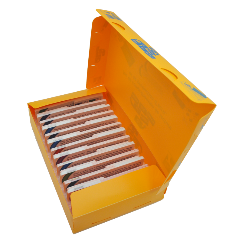 • 14 thèmes, pour chacun 7 cartes longues parties du texte entier,