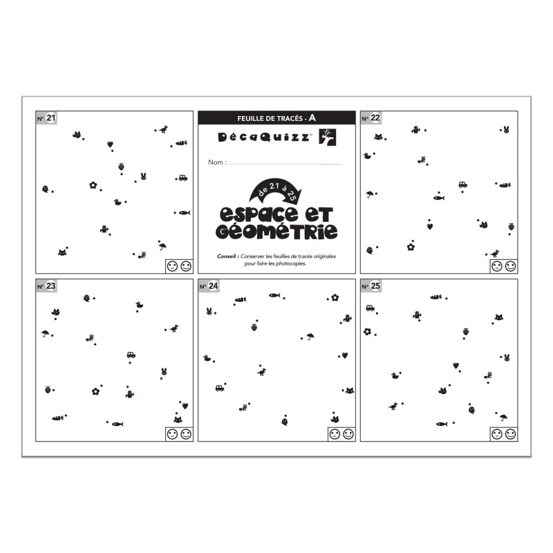 Pochette de 20 fiches exercices, soit 200 exercices, 2 fiches de tracés, 2 transparents autocorrectifs.